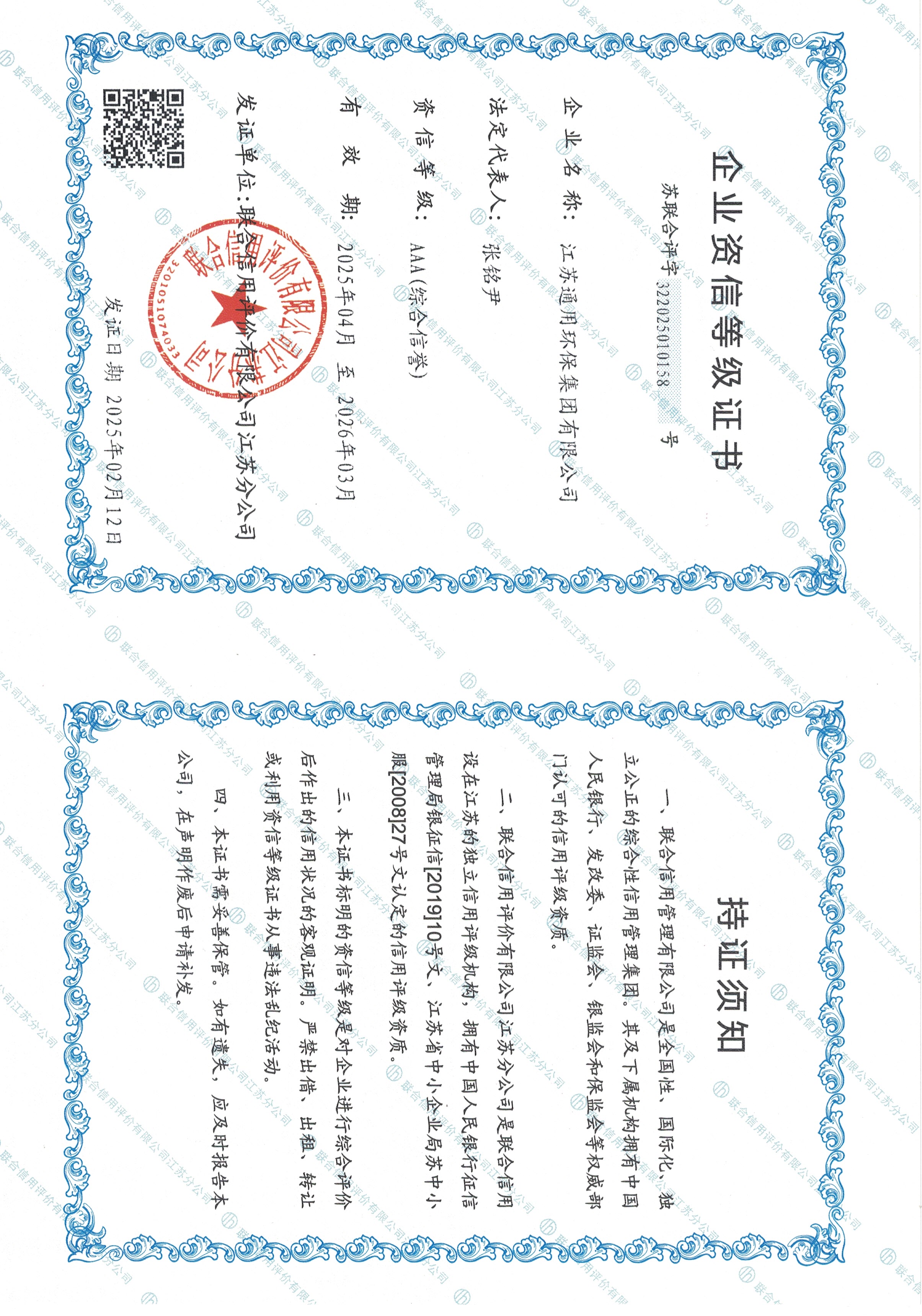 AAA资信等级证书